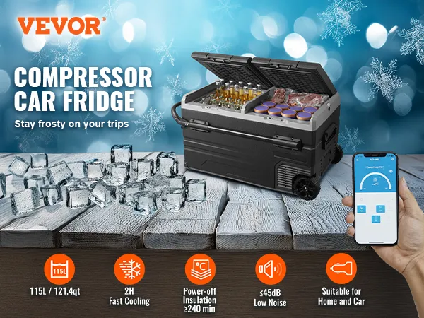 115 L car refrigerator with upgraded compressor for rapid cooling in 160min, capable of storing at both high and low temperatures, maintaining excellent operation between 16 ~ 38 ℃ / 60.8 ~ 100.4 ℉.