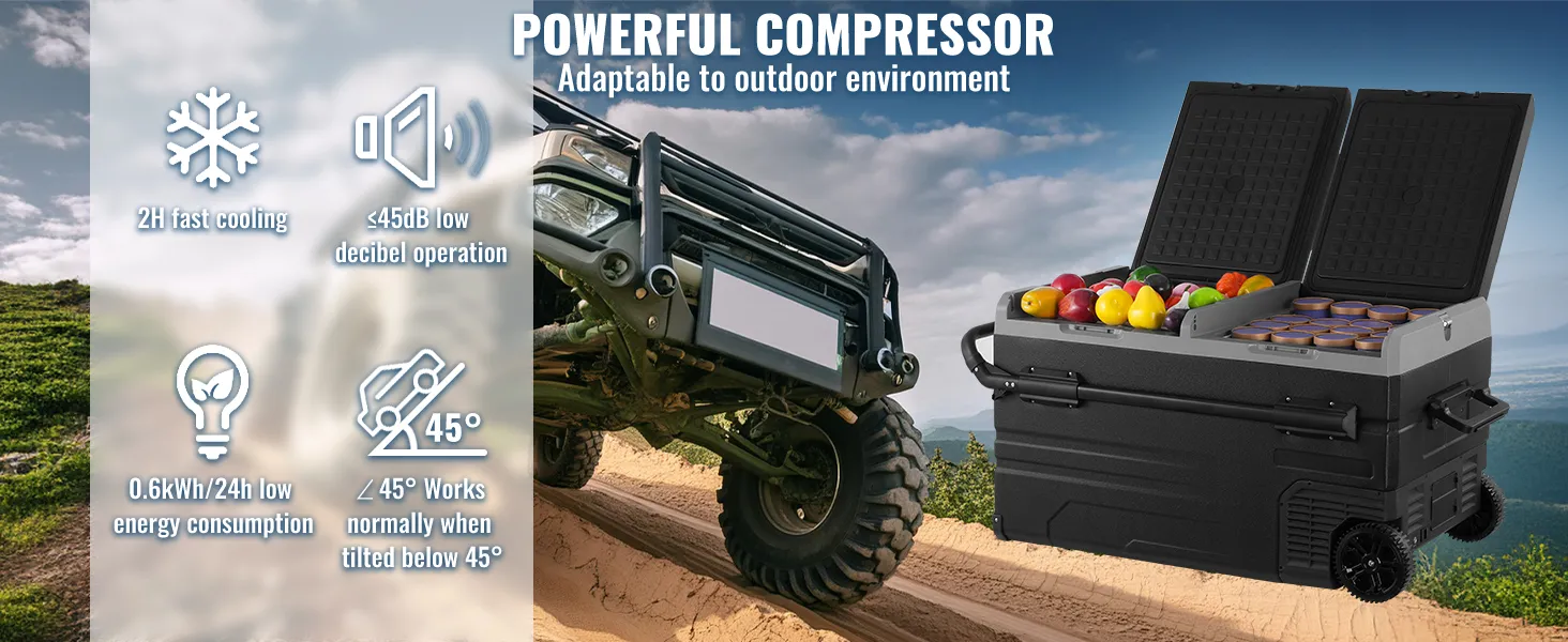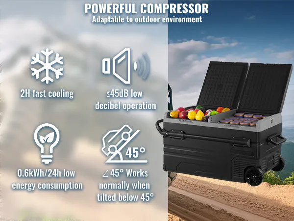 Quiet & Energy Efficient: The fridge operates with noise ≤ 45dB, ensuring you sleep well after long drives. You can also choose between ECO and Max modes via the LCD touchscreen. In ECO energy-saving mode, the operating power of this portable fridge is less than 48W. Even when running in MAX mode (54W), its intelligent circulation consumes less than 1 kWh/day.