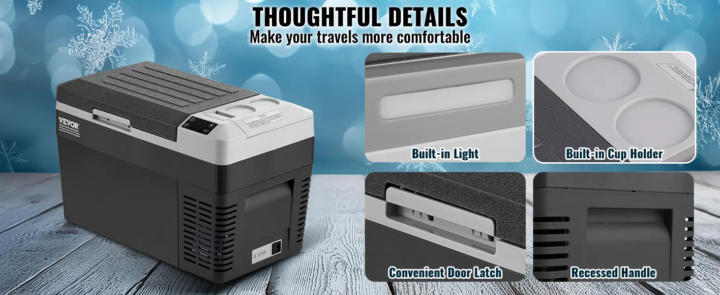 LED Screen: The LED control panel allows you to directly view the operation status of the car fridge and adjust the temperature range at any time. You can set any temperature between -20°C to 20°C / -4°F to 68°F on the panel.
