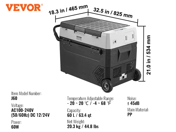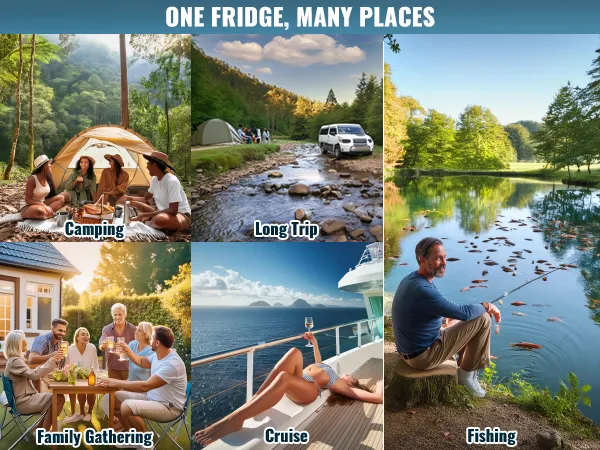 Grote capaciteit: de draagbare koelkast met vriesvak heeft één compartiment met een capaciteit van 63,4 qt (60 l). Deze stevige camperkoelkast biedt plaats aan 100 blikjes cola (330 ml) of 38 flessen water (550 ml) of 26 flessen rode wijn (750 ml), zeevruchten, snacks, vlees en dranken, en voldoet daarmee aan de behoeften van lange reizen zoals: Bijvoorbeeld tijdens het reizen, varen en kamperen.
