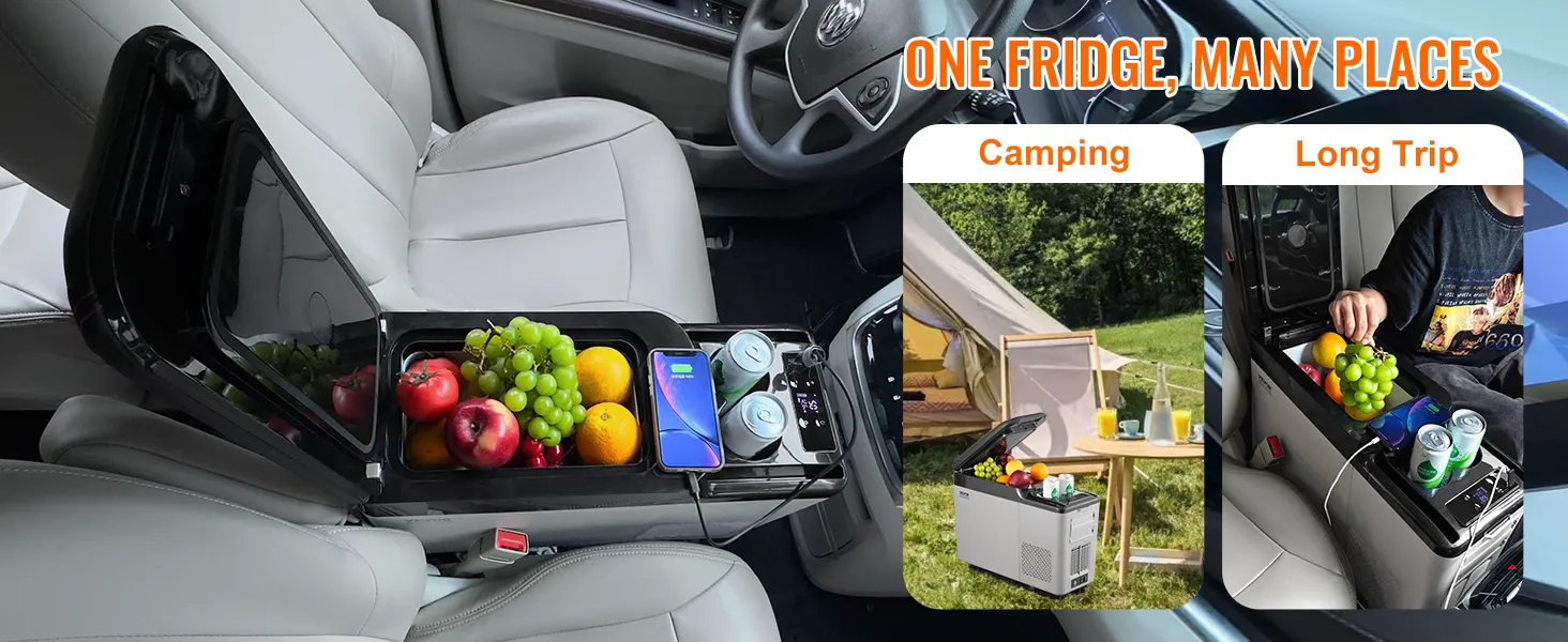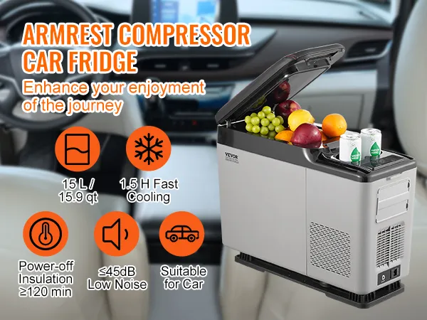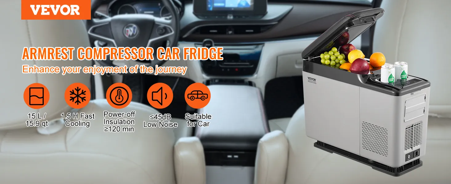VEVOR Autokoelkast, 12V Auto-armsteunkoelkast, Draagbare vriezer met één zone, 15L, Instelbaar bereik van -20°C tot 20°C, 12/24V DC en 100-240V AC, Compressorkoeler voor kamperen in de buitenlucht
