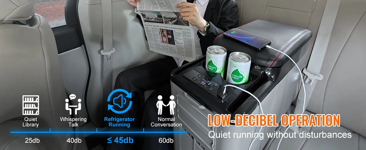 Stil & energiezuinig: De koelkast werkt met een geluidsniveau van ≤ 45 dB, waardoor je ook na lange reizen goed kunt slapen. Via het LCD-touchscreen kun je kiezen tussen de ECO- en Max-modus. In de energiebesparende ECO-modus verbruikt de draagbare koelkast minder dan 38 watt. Zelfs in de MAX-modus (44W) verbruikt de intelligente geforceerde luchtkoeling minder dan 1 kWh/dag.