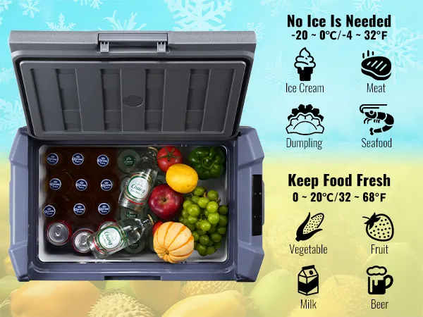 Adjustable temperature from -20 ~ 20 ℃ / -4 ~ 68 ℉, suitable for refrigerating beer, beverages, fruits, ice cream, various meats, and more.