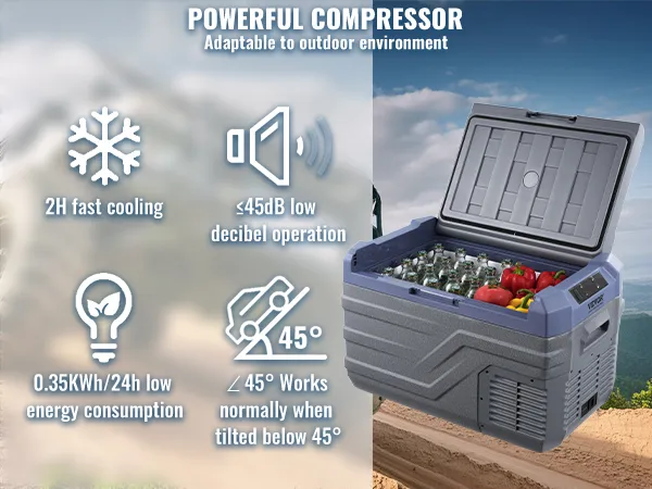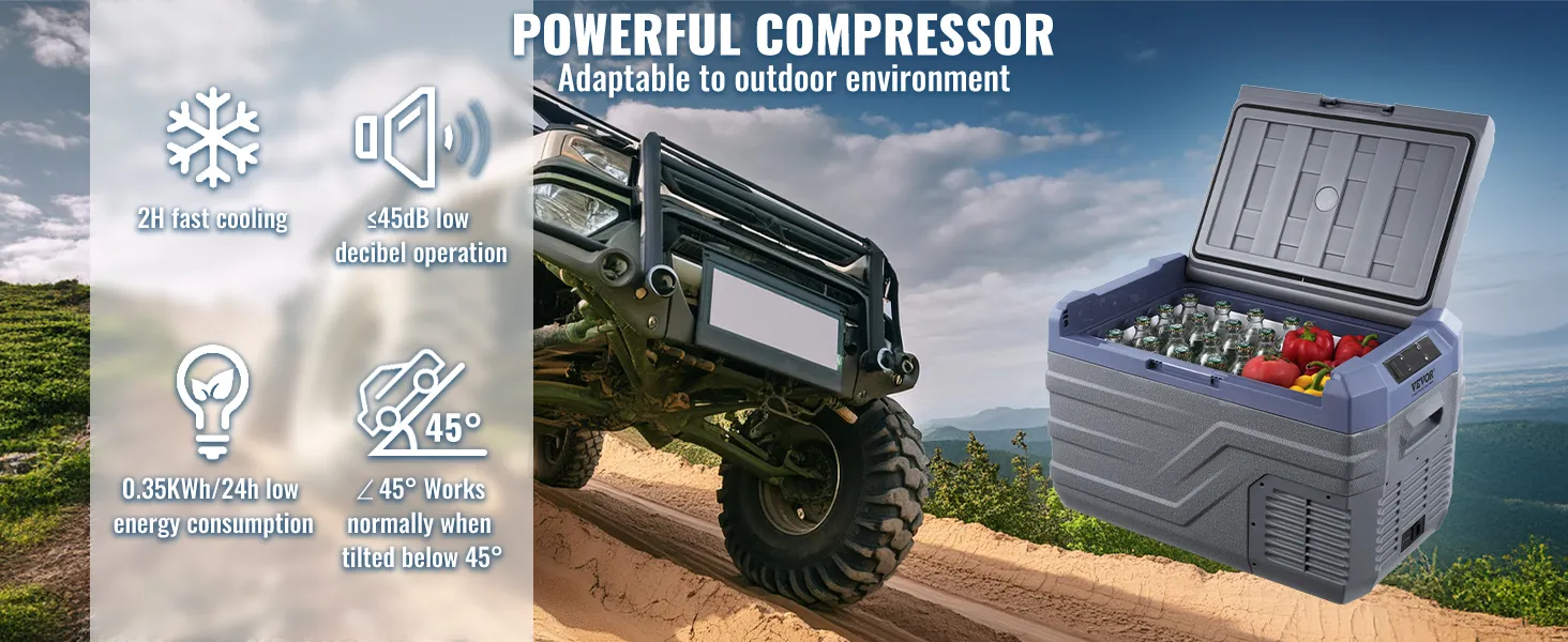 1.5H Rapid Cooling: This 12V car fridge uses compressor cooling technology, reaching -20°C / -4°F shutdown point in approximately 1.5H at 77°F ambient temperature. It cools quickly and operates normally even when tilted up to 45 degrees, making it your companion for outdoor camping or work, keeping your food fresh. No need for ice cubes, preventing food spoilage and saving money and space.