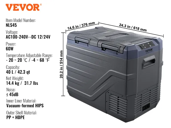 Grote capaciteit: de draagbare koelkast met vriesvak heeft twee compartimenten met een capaciteit van 40 l (42,3 qt). Deze heavy-duty camperkoelkast biedt plaats aan 58 blikjes cola (330 ml), 55 flessen water (550 ml) of 12 flessen rode wijn (750 ml), zeevruchten, snacks, vlees en drankjes, en voldoet aan de behoeften van korte reizen zoals reizen , varen en kamperen .