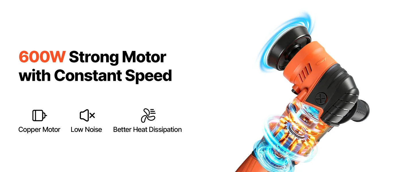 De krachtige 600W-motor levert sterke en stabiele prestaties voor efficiënt polijsten en gladmaken.