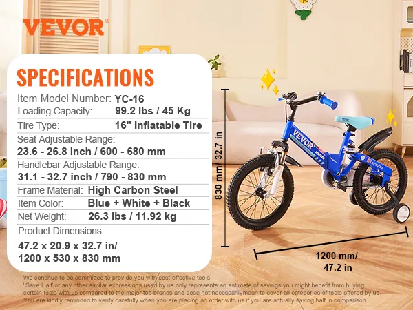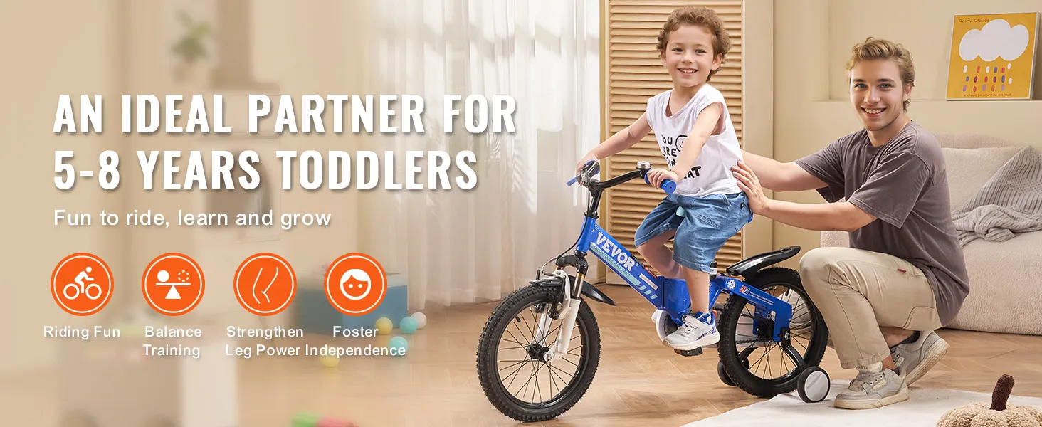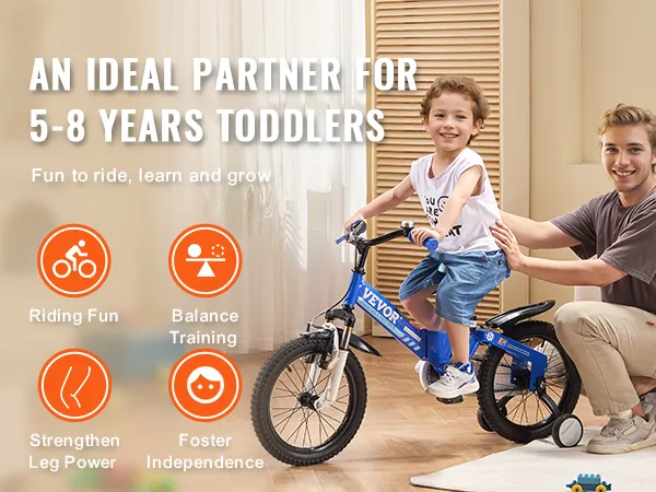 The perfect companion for kid's growth journey, VEVOR folding toddler balance bike promotes physical development while providing endless fun. With 99.2LBS high loading, high carbon steel frame, and adjustable seat & handlebar, it ensures comfort and safety, ideal for children aged 5-8 years.