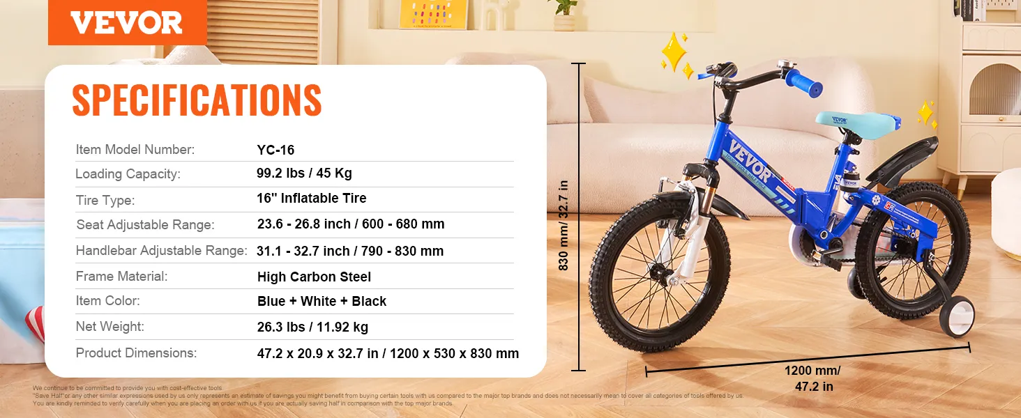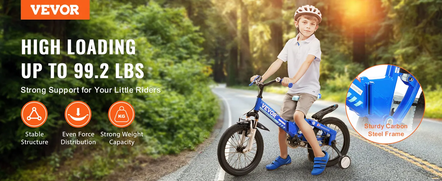 16" Large All-Terrain Tires: Equipped with 16-inch all-terrain inflatable wheels, this high carbon steel toddler bicycle provides excellent shock absorption and adapts to various surfaces for a smoother ride. Whether indoors or outdoors, at the park, on sidewalks, or at the beach, your child will enjoy a steady and comfortable ride.