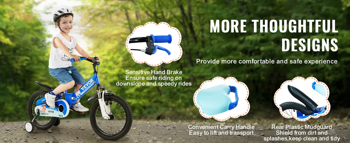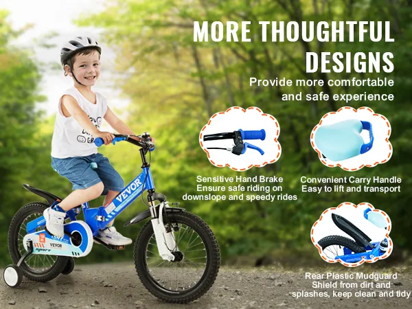 Ride with Confidence & Safety: We prioritize safety with dual shock absorbers and sensitive hand brake. Dual shock absorbers effectively reduce suspension and bumps, while the sensitive hand brake allows kids to better control their speed and stop safely when going downhill or riding fast, ensuring a smooth and safe riding experience for children.