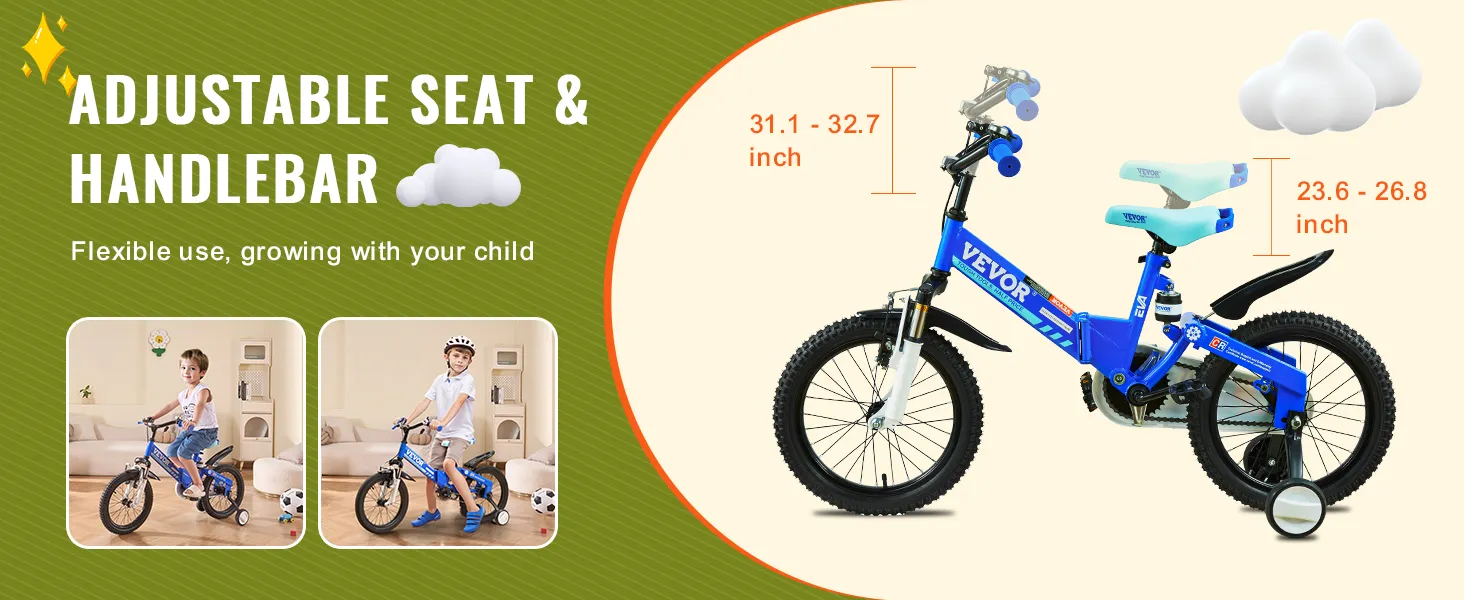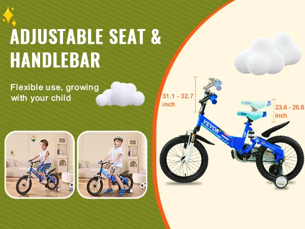 Grow with Your Child: With 23.6 - 26.8 inch adjustable seat and 31.1 - 32.7 inch adjustable handlebar, you can easily customize the height to accommodate your child's growth and changing needs. Flexible adjustments ensure a great riding partner for a longer time, keeping the fun going for your growing kids.