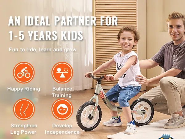 De VEVOR peuterloopfiets is een meegroeifiets voor kinderen. Het helpt om het evenwicht en de coördinatie te verbeteren. Het verbetert ook de motoriek en het ruimtelijk inzicht. Deze fiets is perfect voor kinderen van 1-5 jaar. Het ontwerp van de fiets zorgt ervoor dat kinderen met vertrouwen kunnen leren fietsen. Kenmerken van de fiets maken het voor hen gemakkelijk om de snelheid te regelen en te stoppen. Dit helpt hen om onafhankelijkheid en zelfvertrouwen op te bouwen in hun toekomst. De verstelbare stoel en het stuur groeien mee met uw kind. Kinderen mogen dus langer genieten van het fietsen. U kunt hiervan genieten terwijl zij genieten van waar u op groeit.