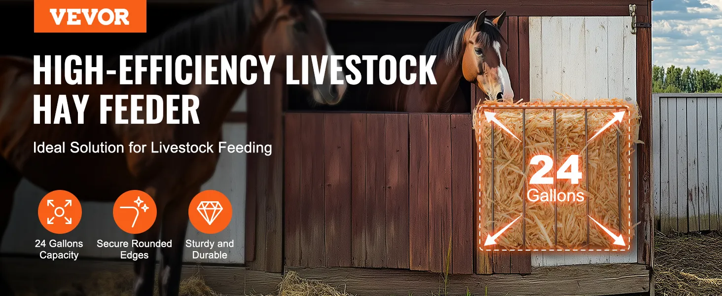 Ontwerp met grote capaciteit: met dit hooirek van 24 gallon kunt u de hele dag voeren met één vulling, waardoor de voerfrequentie wordt verminderd.
