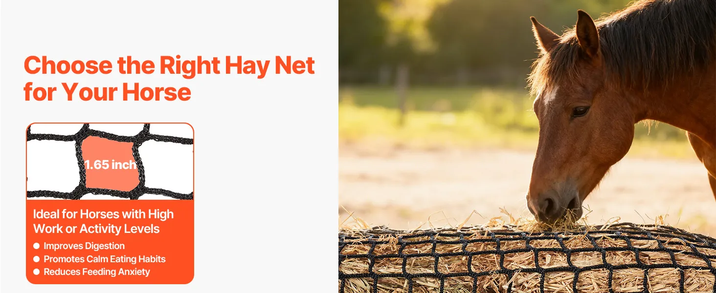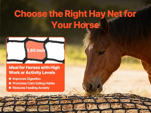 Dit ronde hooinet van 42 mm (1,65 inch) is ontworpen voor energieke, actieve paarden. Het reguleert de eetsnelheid en zorgt tegelijkertijd voor voldoende hooi-inname om aan de energiebehoefte te voldoen na intensieve training of arbeid.