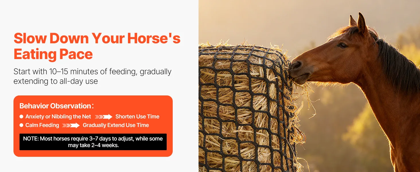 Wetenschappelijk geoptimaliseerd, langzaam voeren: Dit ronde hooinet met een maaswijdte van 42 mm (1,65 inch) bootst natuurlijk grazen na, vertraagt de voeropname, voorkomt overvoeding en vermindert het risico op een opgeblazen gevoel en maagzweren. Dit bevordert een optimale spijsvertering bij paarden.