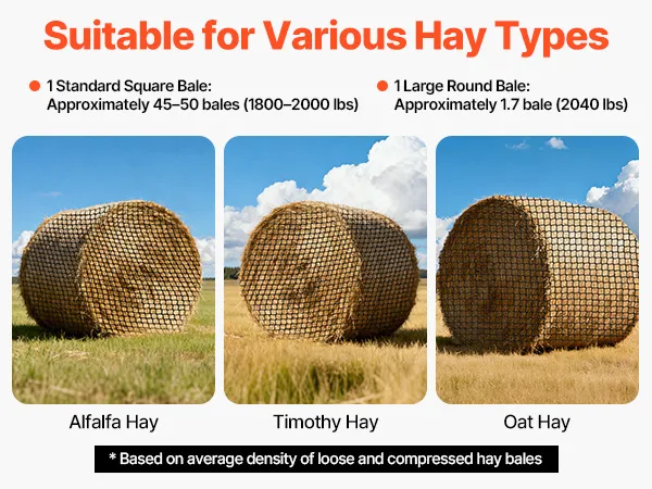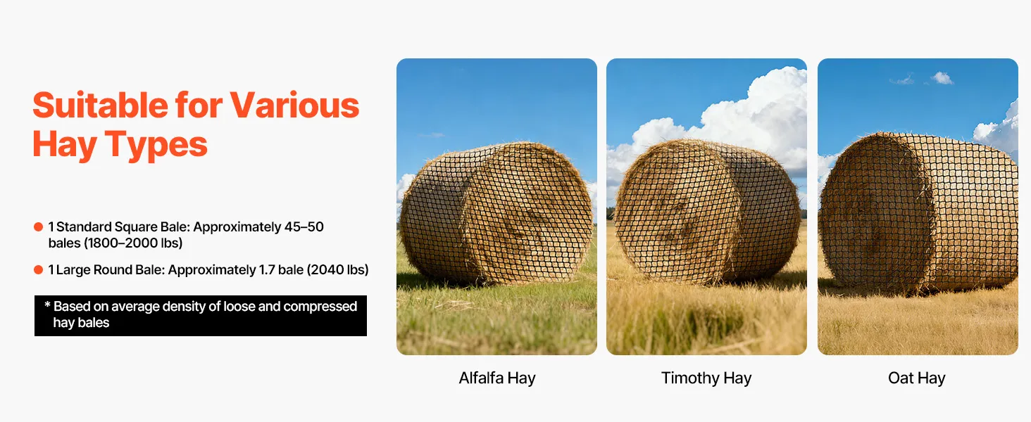 Ons hooinet voor ronde balen is geschikt voor diverse soorten hooi, waaronder alfalfa-, timothee- en haverhooi, en ondersteunt zowel standaard vierkante balen als grote ronde balen voor flexibele voeding en efficiënt veemanagement.