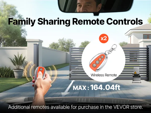 Toegang via afstandsbediening: De schuifpoortopener wordt geleverd met twee afstandsbedieningen met een bereik van 50 m en ondersteunt maximaal 40 afstandsbedieningen voor grotere huishoudens, gemeenten, bedrijven of scholen.