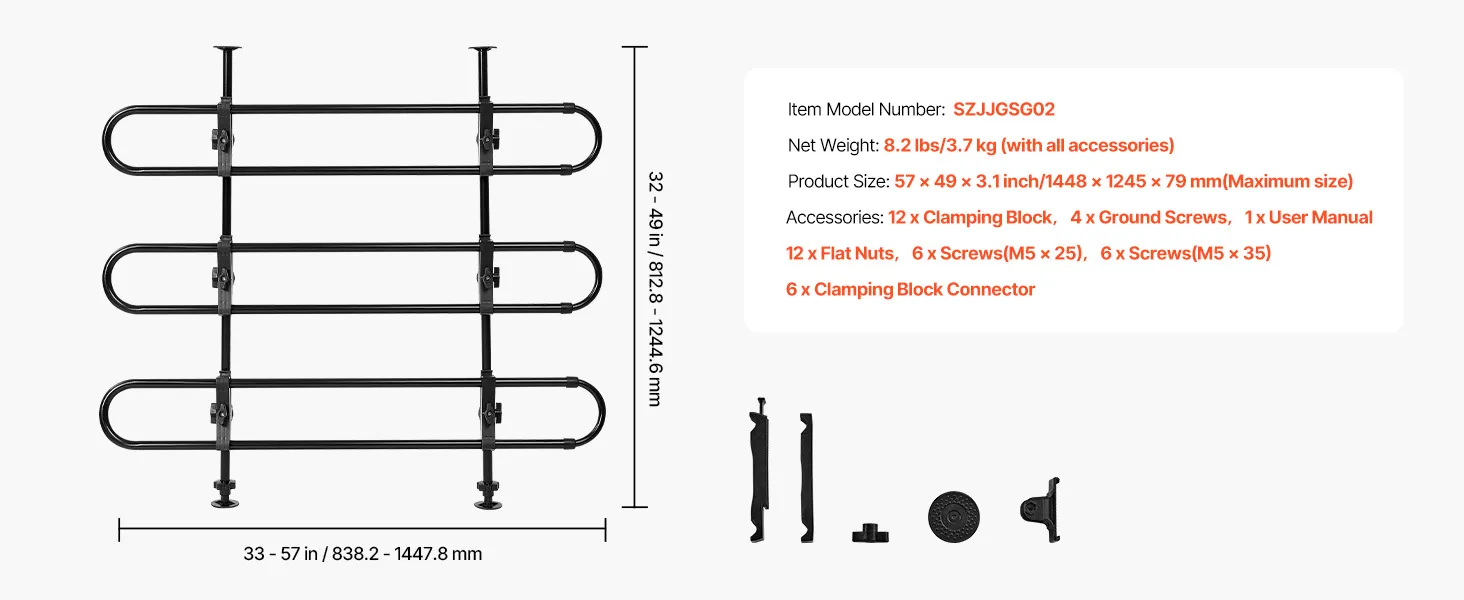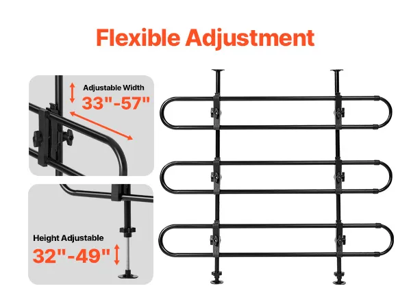 Adjustable: This dog car barrier is adjustable in both width (33-57 inches / 838.2-1447.8 mm) and height (32-49 inches / 812.8-1244.6 mm), making it suitable for cars, coupes, SUVs, and more.