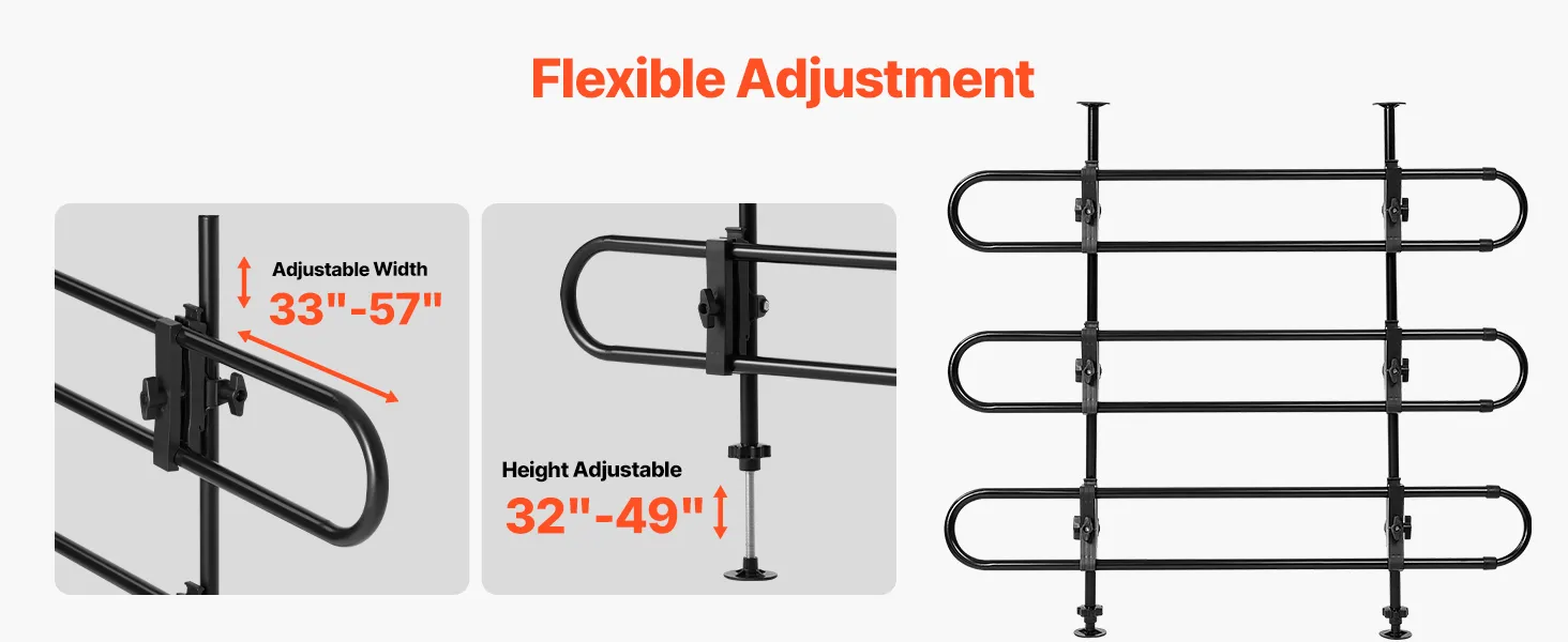 Heavy-Duty Steel: This dog car barrier for SUV is made with reinforced, thick steel pipes that are tough against deformation and bending, ensuring long-lasting durability. Even with bumps or climbing from your dog, it remains stable and provides excellent support.