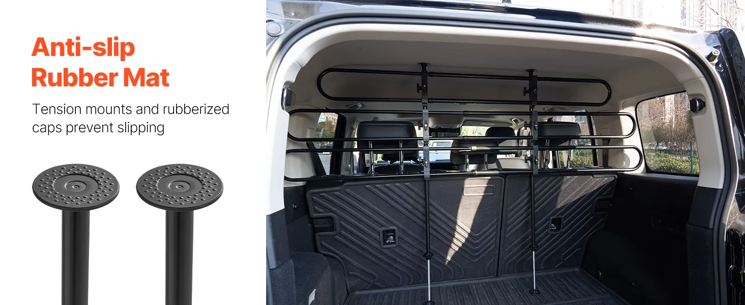 Anti-Slip Foot Pads: This vehicle pet barrier features 4 anti-slip foot pads and tension support, ensuring it stays firmly in place inside the vehicle. It minimizes movement and reduces vibrations or noise during the drive.
