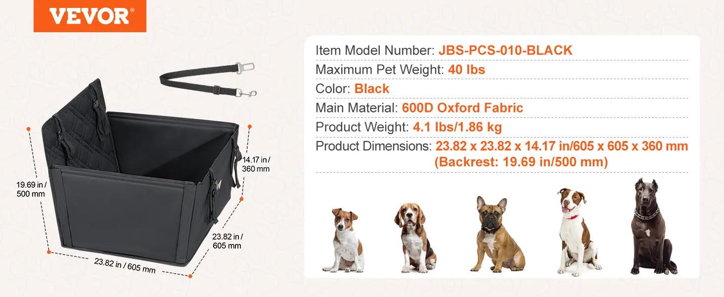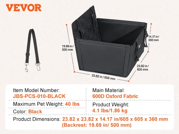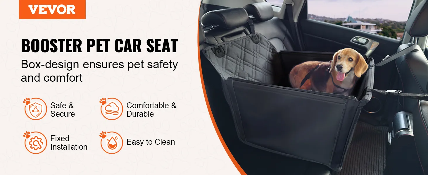 VEVOR Hondenautostoel, Waterdichte Hondenverhoger met Ondersteuningsframe, Autostoel voor Huisdieren met Bevestigbare Veiligheidsriem, Hondenautobed voor Kleine, Middelgrote en Grote Honden tot 18 kg, Zwart