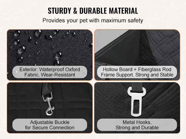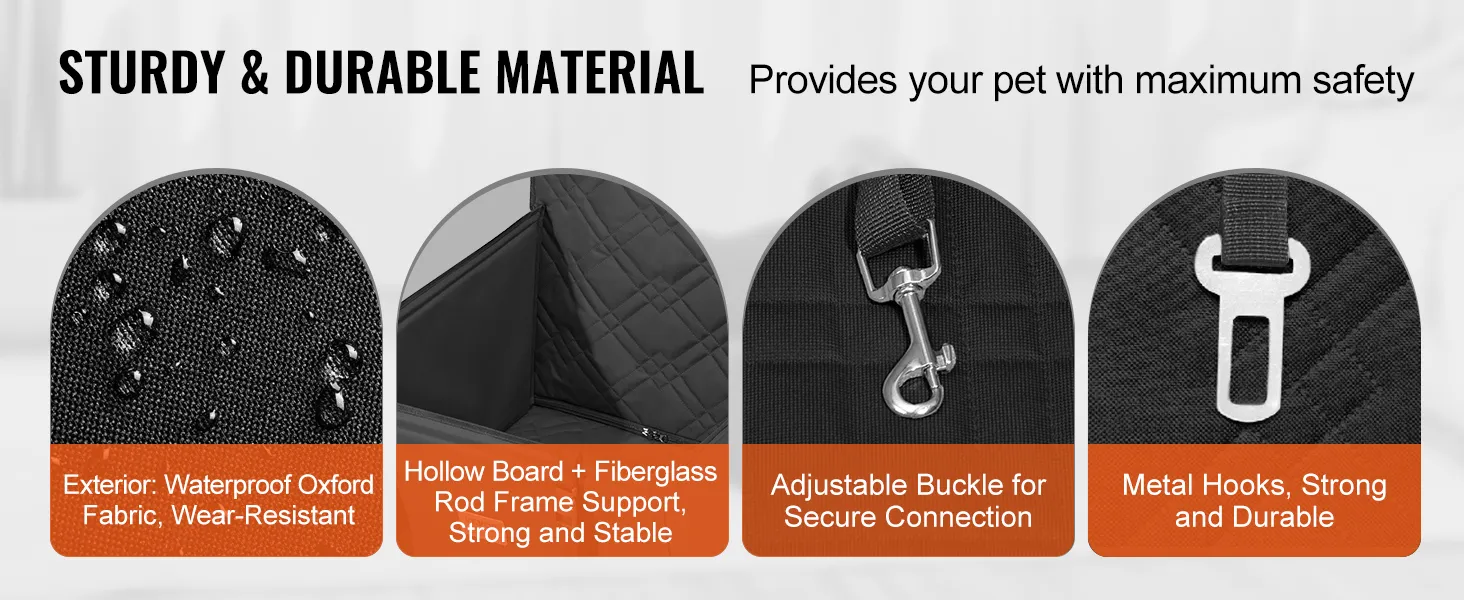 Veiligheidsbescherming: ons hondenautostoeltje heeft een volledig beschermingsontwerp met holle planken en glasvezelstaven voor uitstekende ondersteuning. Het biedt uw huisdier veiligheid tijdens het reizen met de auto en verlicht zijn reisangst.