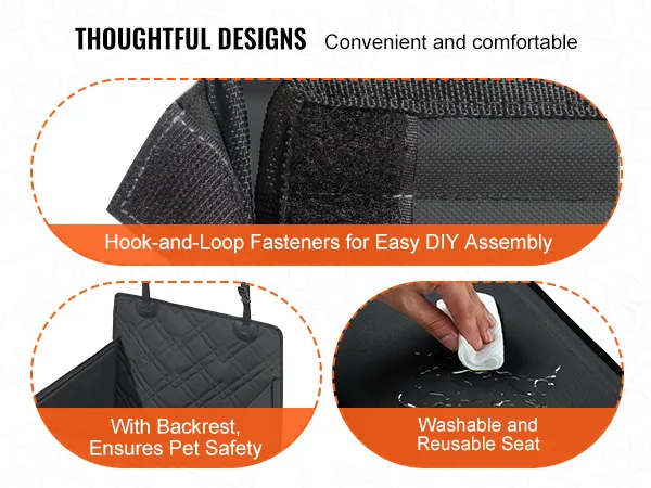 Voorzien van verstelbare veiligheidsgordels en een veiligheidsgordel voor huisdieren voor een veilige bevestiging. Eenvoudig genoeg om door één persoon te worden geïnstalleerd.