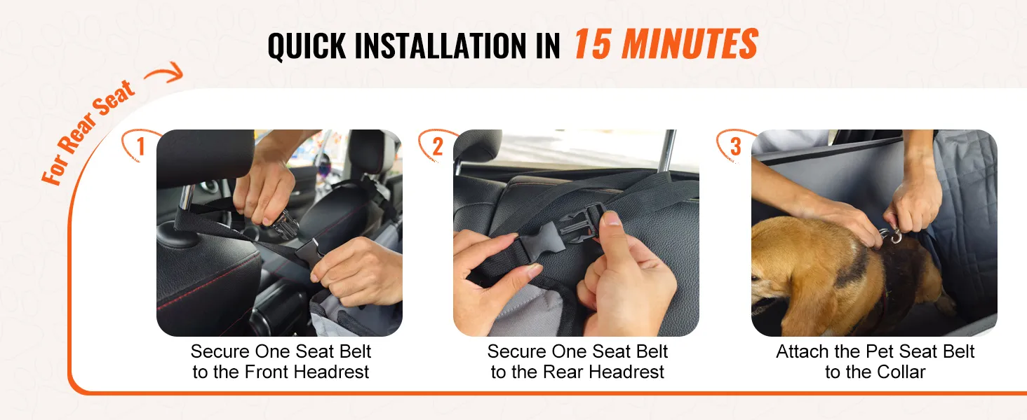 Easy Installation: This pet car seat can be installed in the car rear seat. It includes adjustable seat belts and a safety belt to secure your pet. Secure the seat with adjustable premium buckles to prevent shifting, allowing you to focus on driving safely.