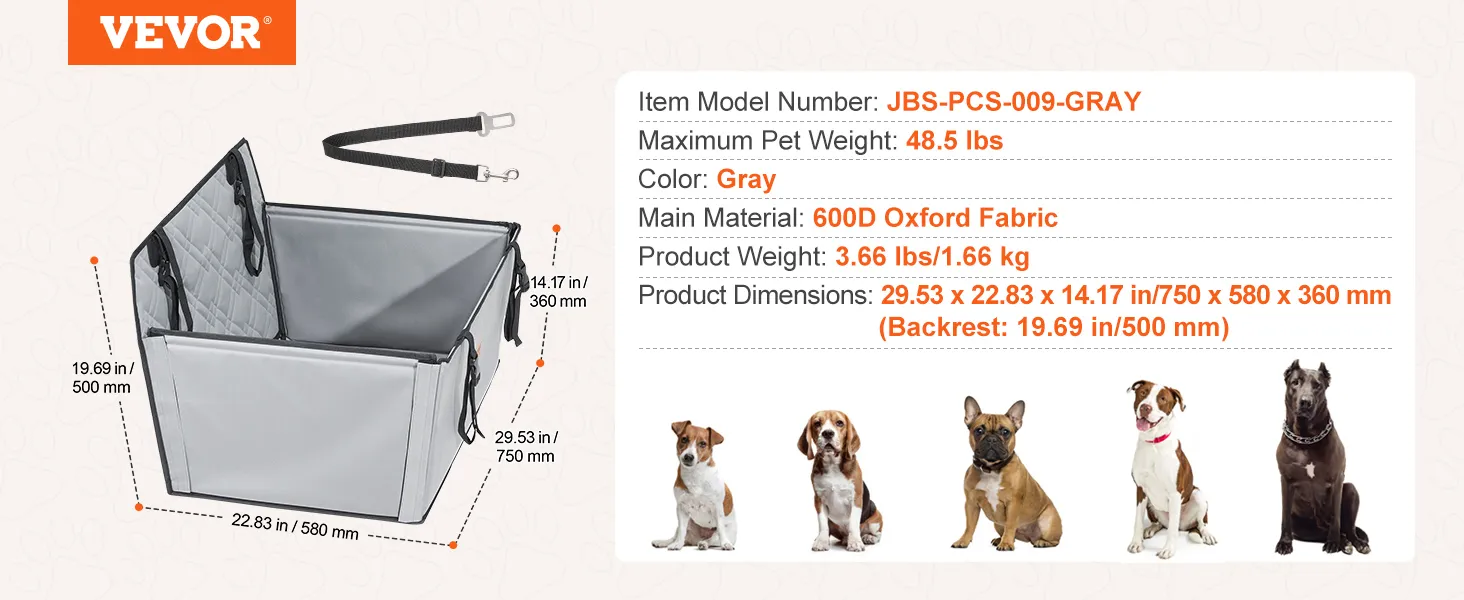 VEVOR Dog Car Seat: Eases pets' travel anxiety and ensures safety!