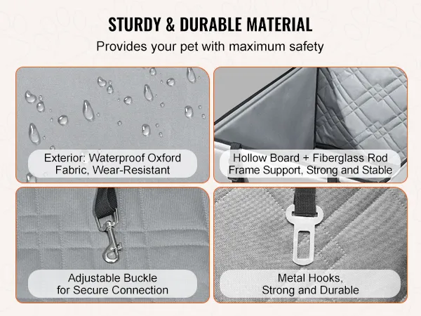 Made from waterproof Oxford cloth supported by hollow boards and fiberglass rods for a sturdy, wear-resistant seat. This dog booster car seat elevates your pet and reduces travel anxiety.