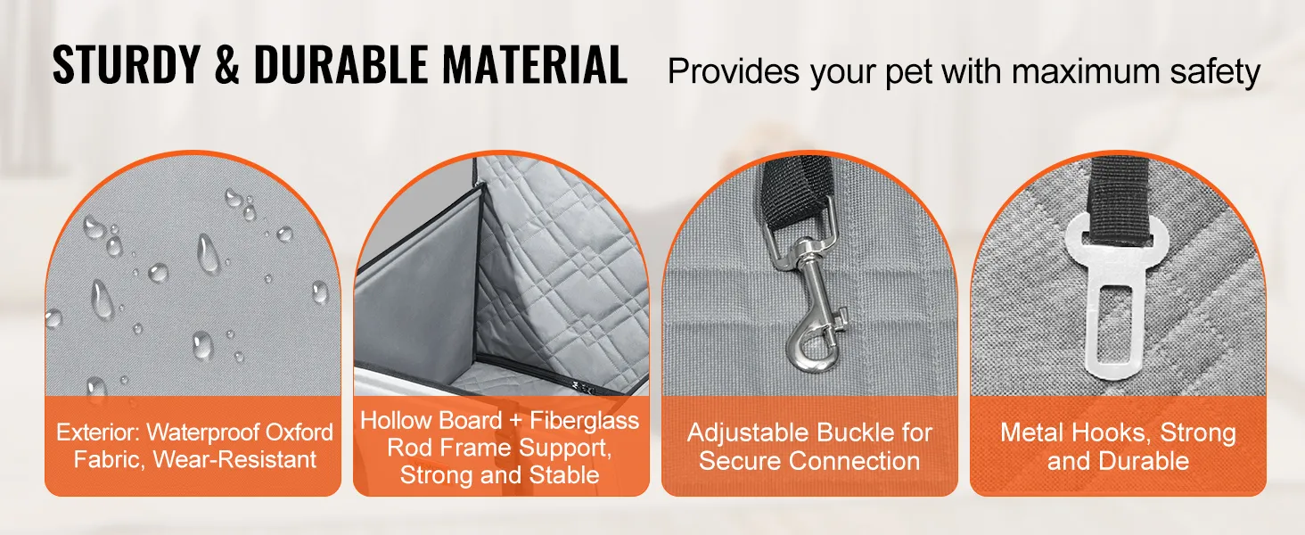 Built to Last: The dog booster car seat is covered with waterproof Oxford cloth, making it resistant to wear and tear. It features high-quality nylon safety belts for added durability and long-lasting use.