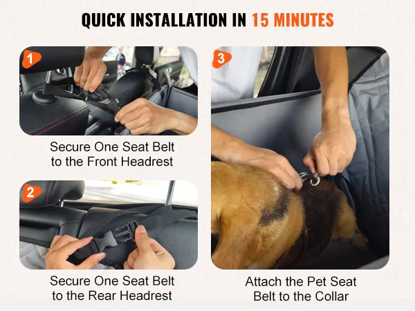 Features adjustable seat belts and a pet safety strap for secure attachment. Simple enough for one person to install.