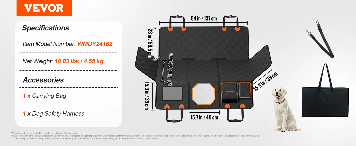 VEVOR dog seat extender available in various sizes to fit sedans, SUVs, and trucks. Compatible with different car brands, allowing you to choose based on your needs.