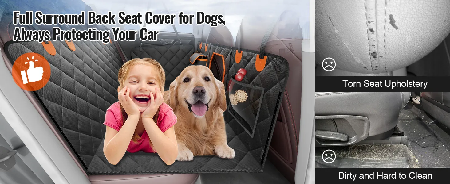 VEVOR Dog Car Seat Cover for Back Seat, 54 x 26.5 in 100% Waterproof, 600D Heavy Duty Backseat Pet Car Hammock Extender with Mesh Window Storage Pocket, Scratch-Proof Nonslip Seat Protectors for SUV