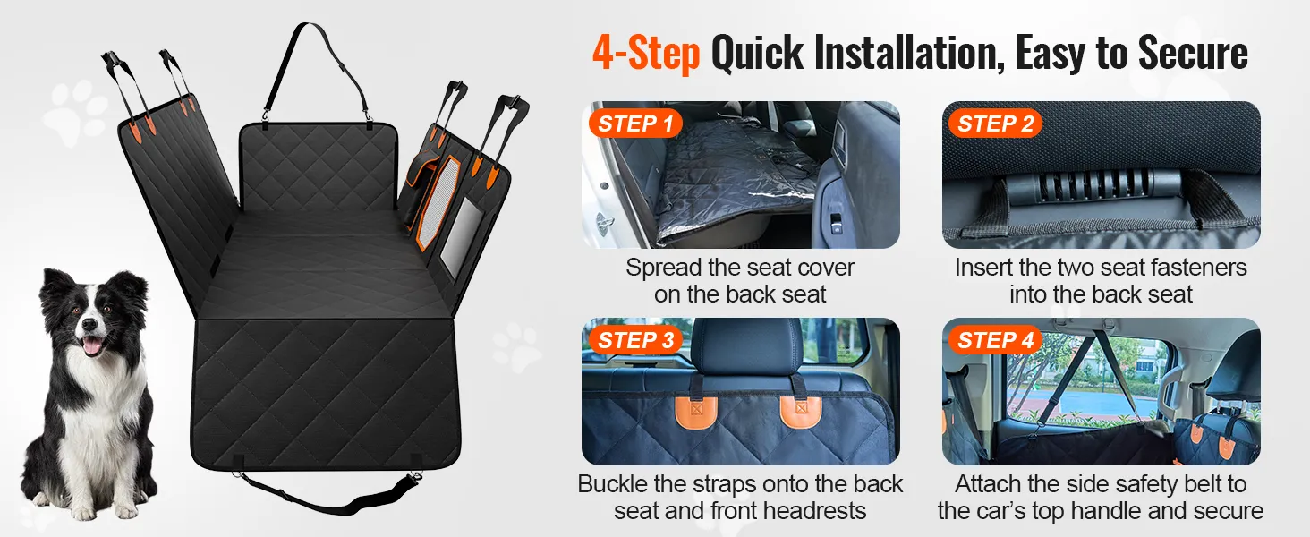 Easy to install with no special tools required, allowing you to set up and start using the dog car seat cover within minutes.