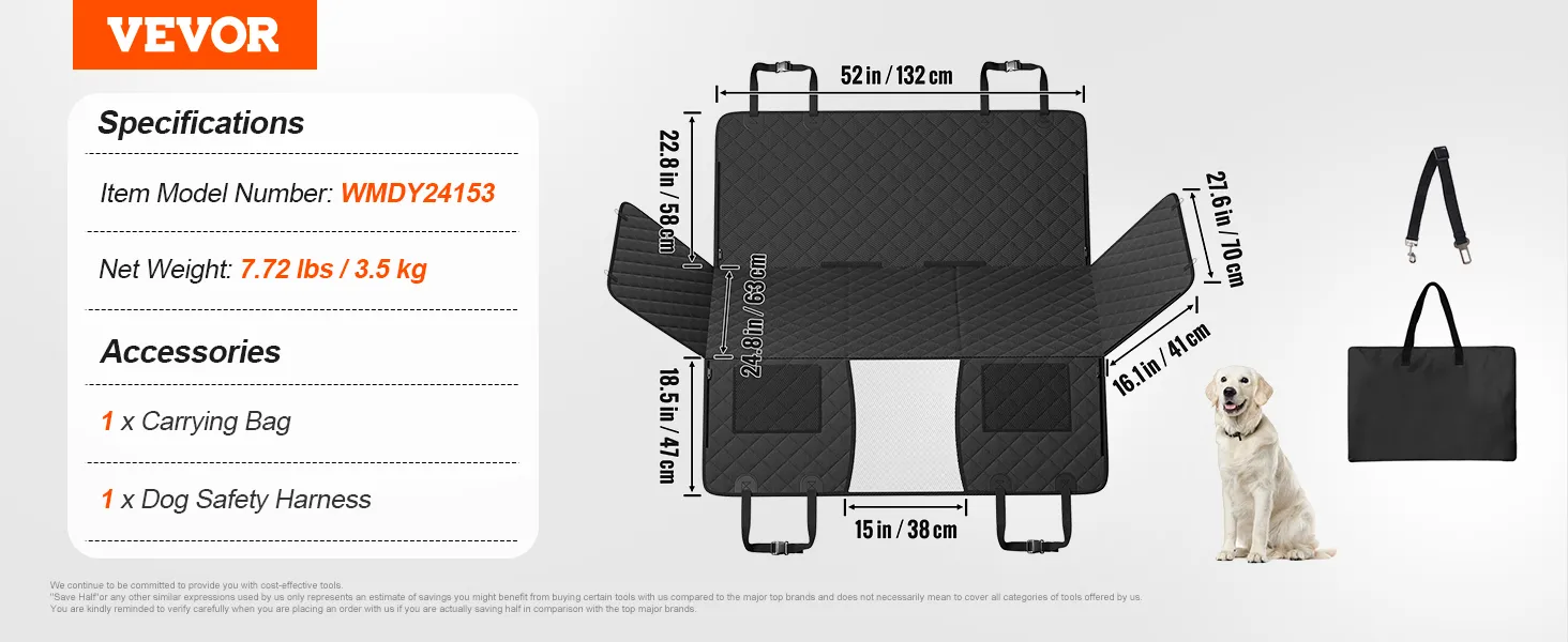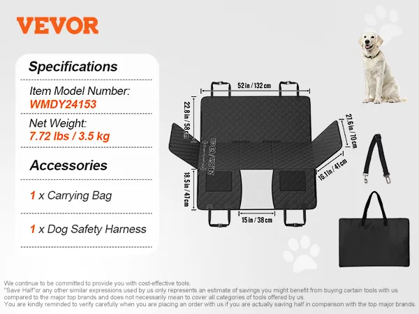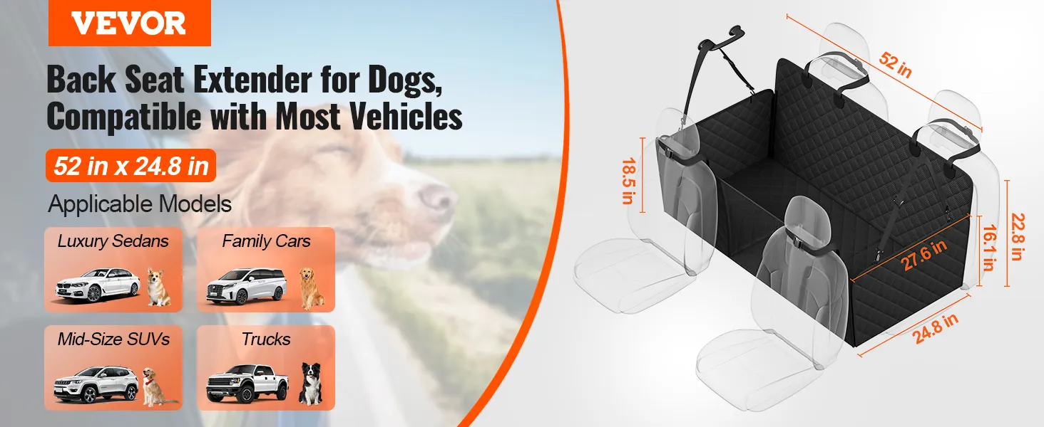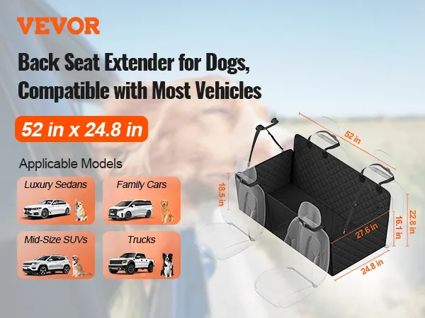 VEVOR dog seat extender available in various sizes to fit sedans, SUVs, and trucks. Compatible with different car brands, allowing you to choose based on your needs.