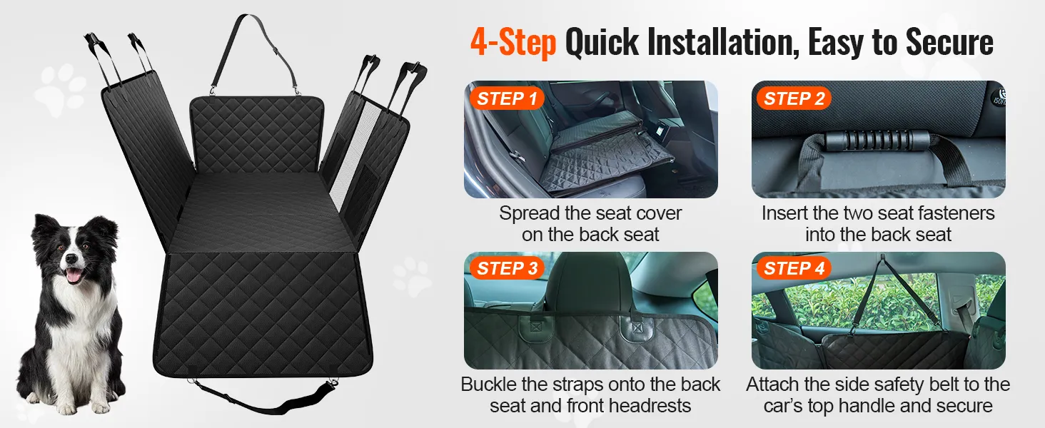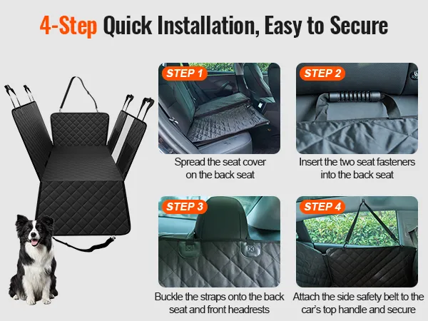 Easy to install with no special tools required, allowing you to set up and start using the dog car seat cover within minutes.