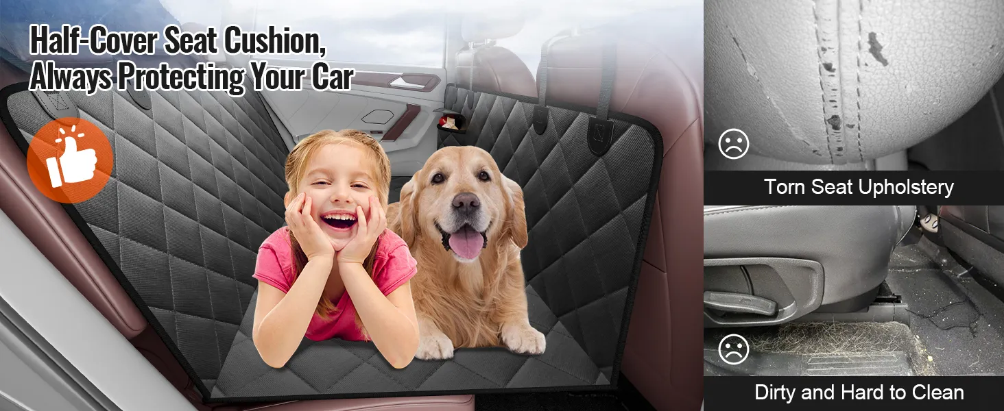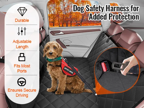 Deze hoes is ontworpen voor achterbanken van auto's en garandeert veiligheid en comfort met zijn duurzame, antislipmaterialen. Het is wasbaar, krasbestendig en beschikt over een ademende mesh-stof, een opbergtas en een veiligheidsgordel.