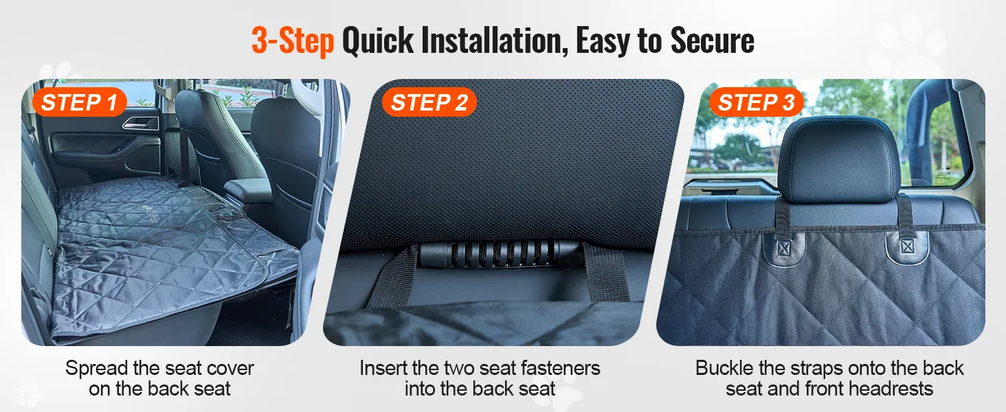 De installatie is eenvoudig en vereist geen speciaal gereedschap. Zo kun je de hondenautostoelhoes binnen enkele minuten opzetten en gebruiken.