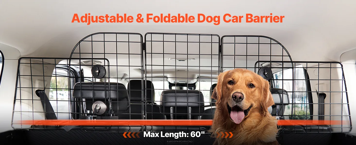 VEVOR Dog Car Barrier, 36.6"-60" Adjustable Car Divider for Trunk Cargo Area, Universal-Fit Back Seat Heavy-Duty Wire Mesh Dogs Separator Guard Net, Vehicle Pet Barrier for Sedans, Trucks and SUVs