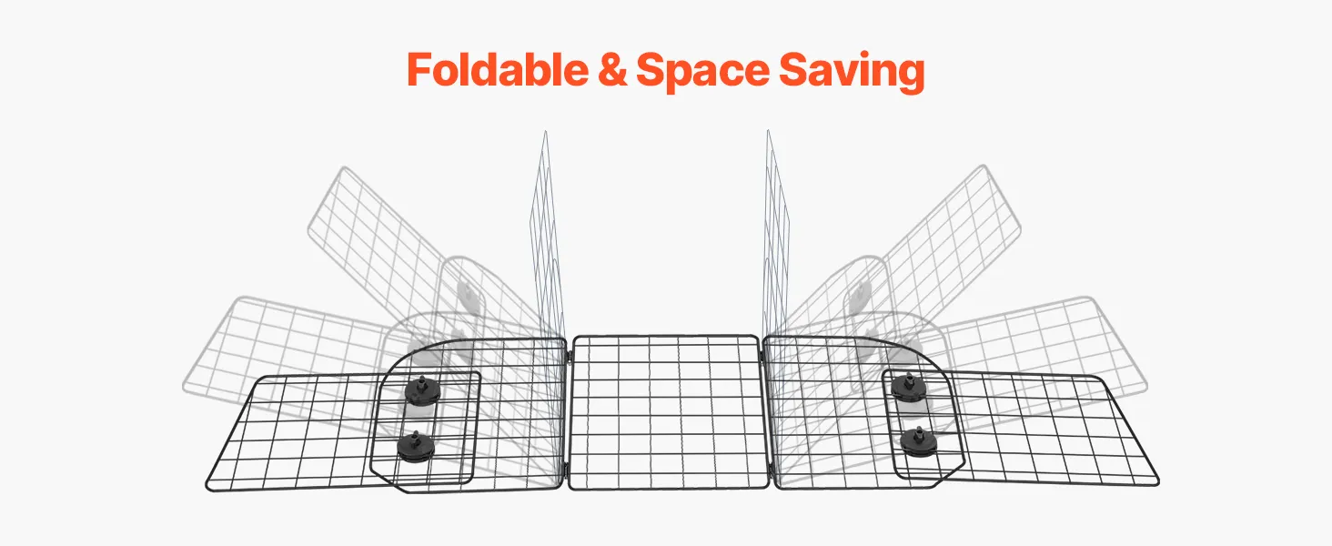 Foldable Design: The foldable design of this vehicle pet barrier allows for easy storage in compact spaces without taking up too much room. It ensures hassle-free installation and storage.