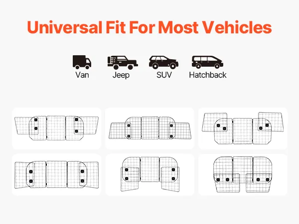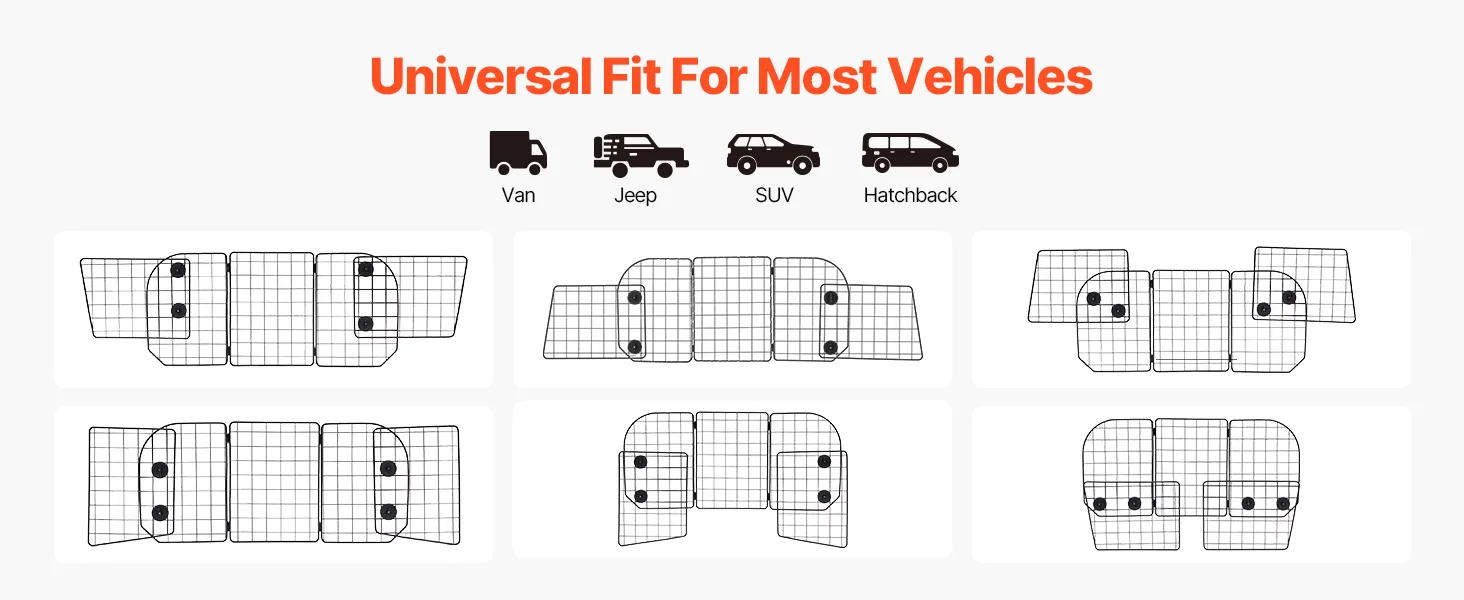 This dog barrier for SUV provides up to 6 shape combinations, extending up to 60 inches (1524 mm). Easily adjust and expand it to fit various SUVs, vans, jeeps, and hatchbacks.