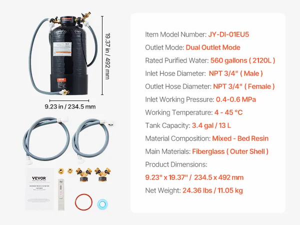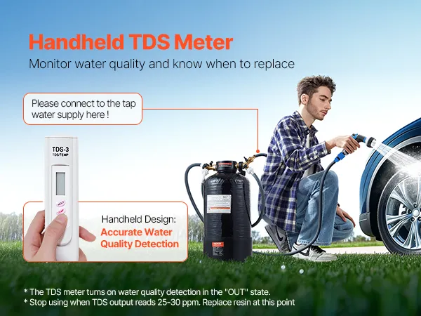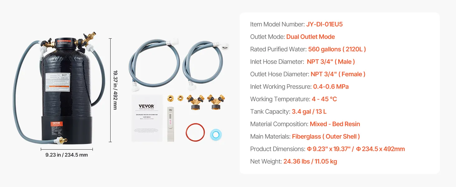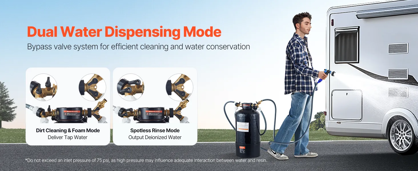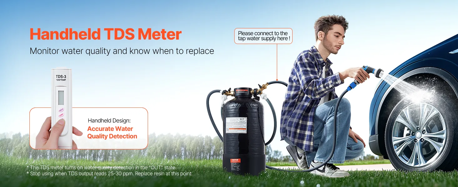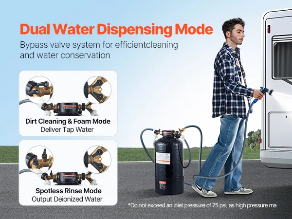 VEVOR Deionized Water System for Car Wash, Premium Water Deionizer For Car Washing with Handheld TDS Meter, Spotless Water Spot Remover Filter with Dual Outlet Mode, Fit for Cars/RVs/Motorcycles