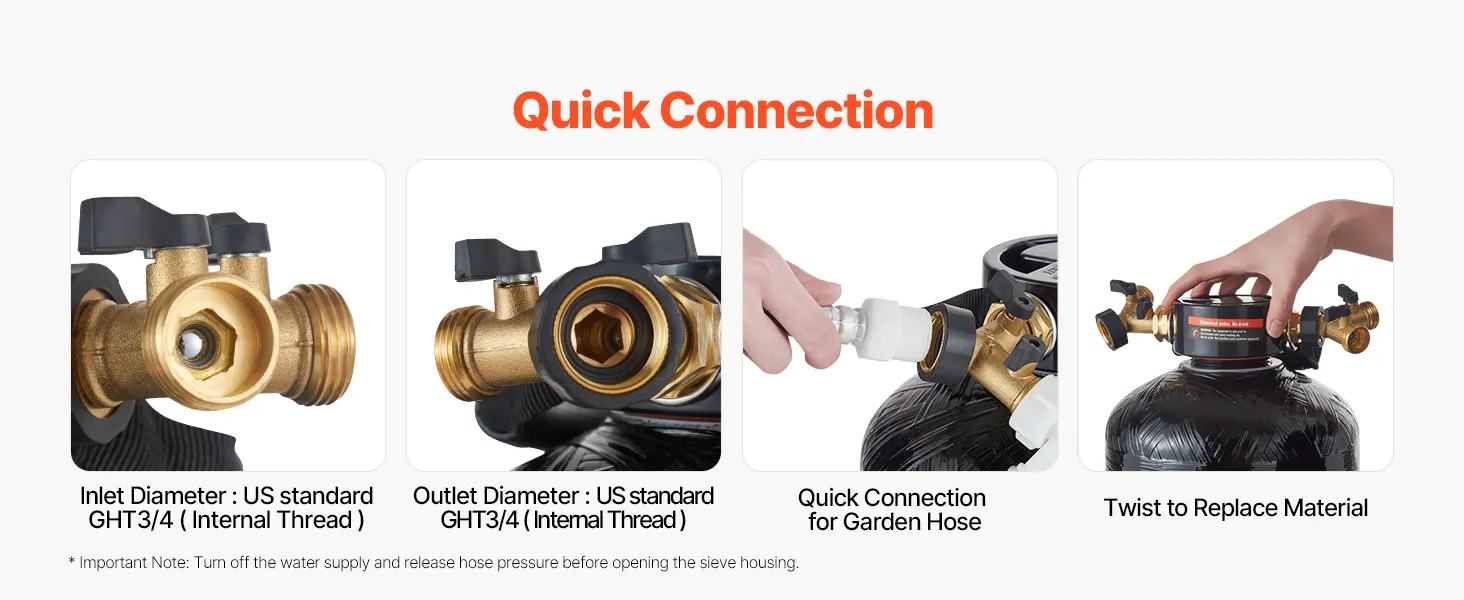 The deionized and stain-free car washing device has standard inlet and outlet size, which has a quick connection with a garden hose. You just need to simply twist open the tank to easily replace the filter.