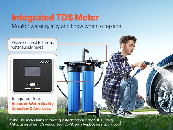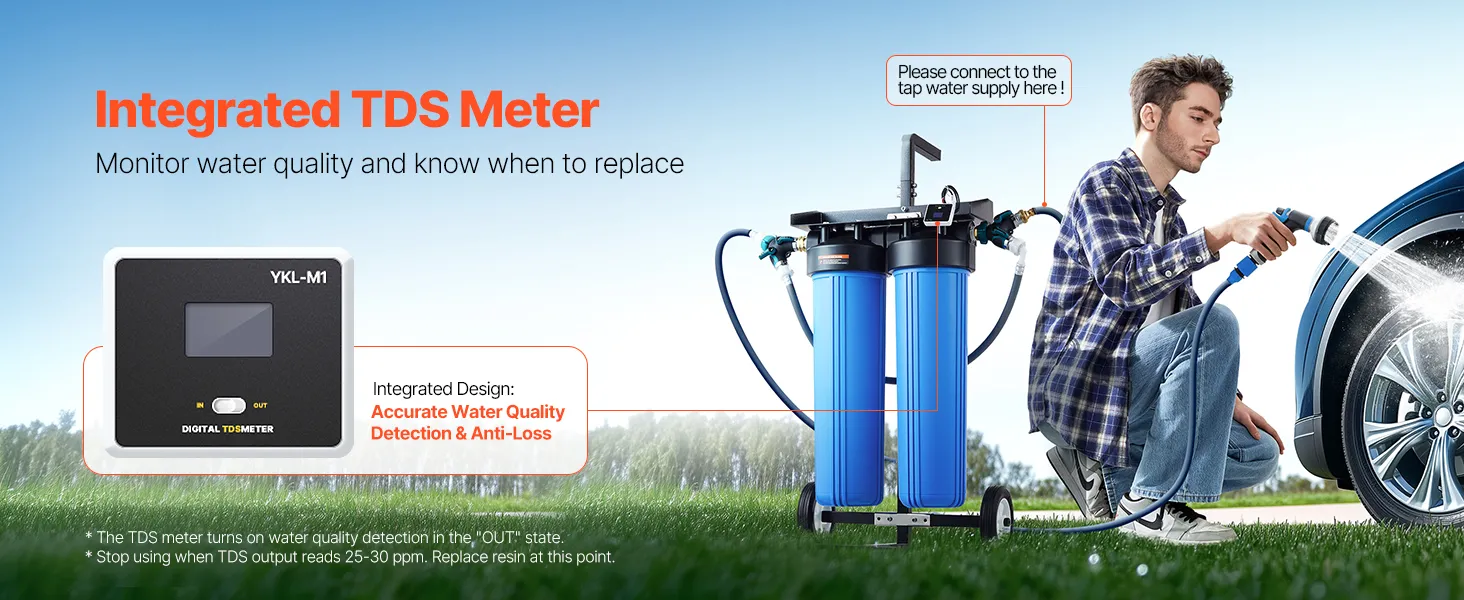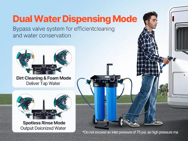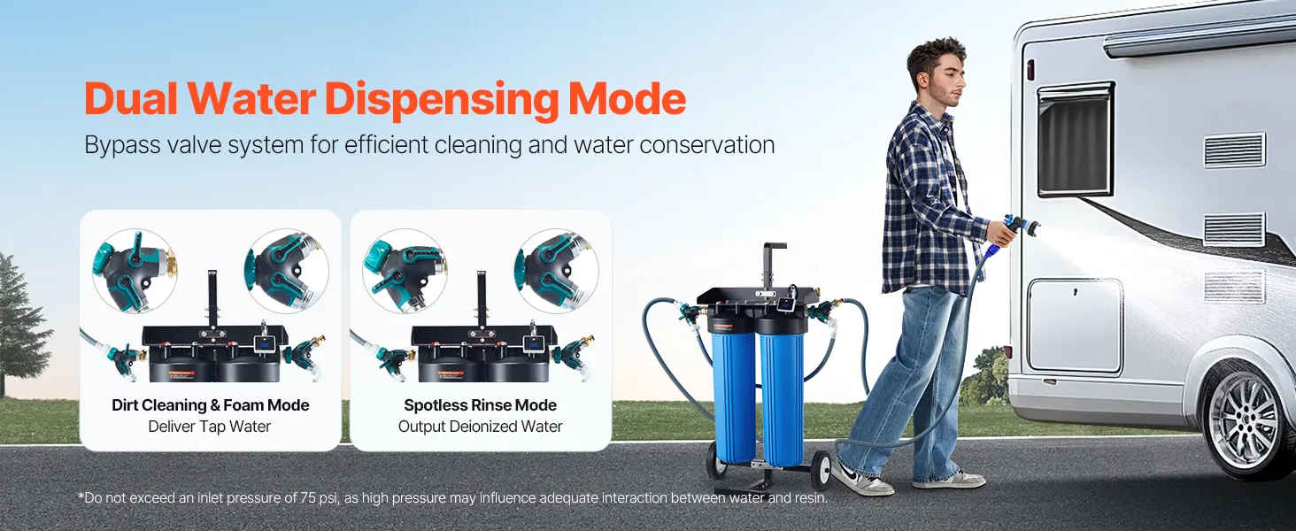 VEVOR Deionized Water System for Car Wash, Premium Water Deionizer For Car Washing with Integrated TDS Meter, Spotless Water Spot Remover Filter with Dual Outlet Mode, Fit for Cars/RVs/Motorcycles