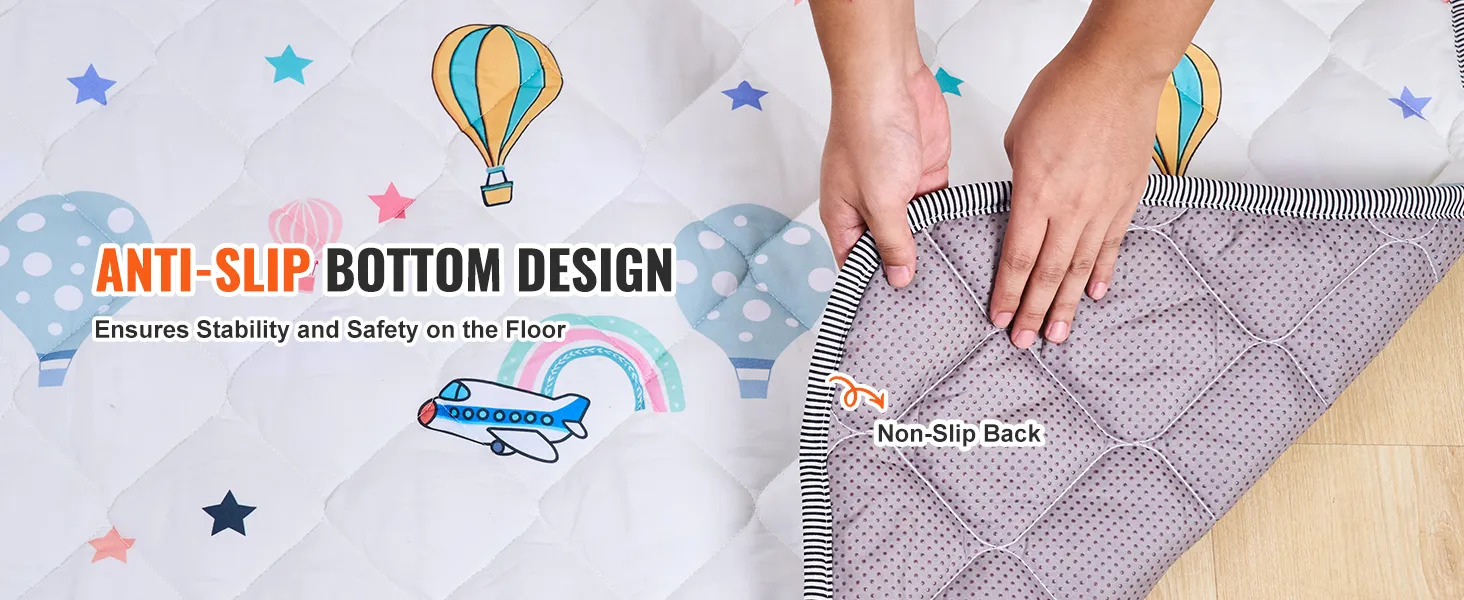 The non-slip bottom prevents the play mats for babies and toddlers from shifting and slipping, helping your baby learn to crawl and walk safely.