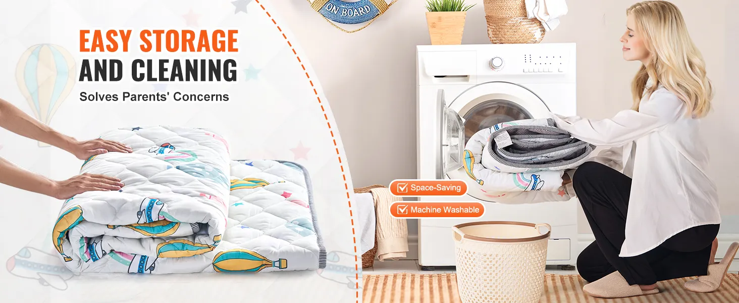 This foldable one-piece crawling mat is easy to carry or store, saving space. Simply put it in the washing machine to remove stains, freeing up parents' hands.