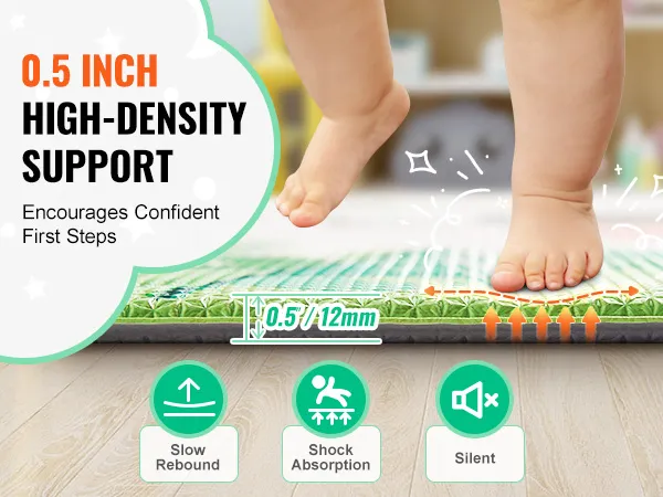 Cushioned Thick Mat: The baby floor mat is 0.5 inch / 12 mm thick, effectively cushioning and absorbing impacts from your baby's activities. In a drop test from 5.6 feet, a raw egg doesn't break, showcasing its protective capabilities. It helps prevent injuries, protecting your baby's joints and bones, and reduces noise from footsteps.