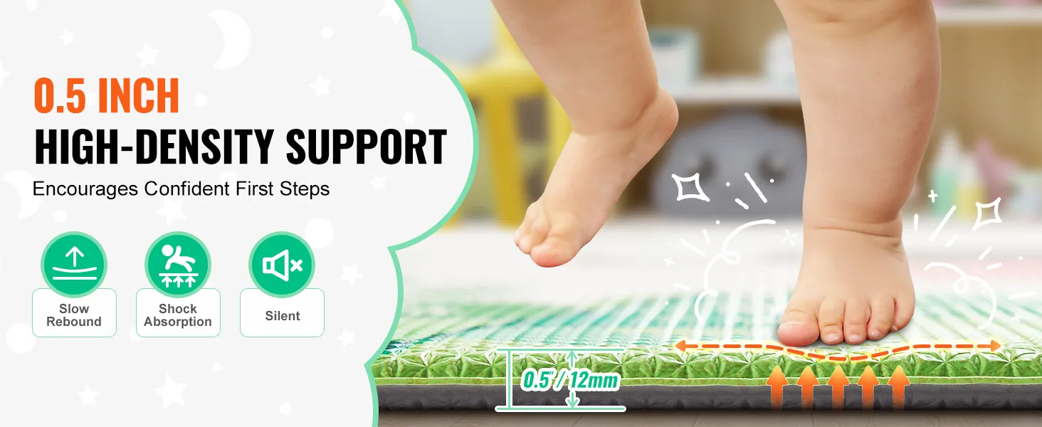 This baby playmat use high-density materials cushion impacts, fully protecting your baby's hands, knees, and head from hard floor surfaces.