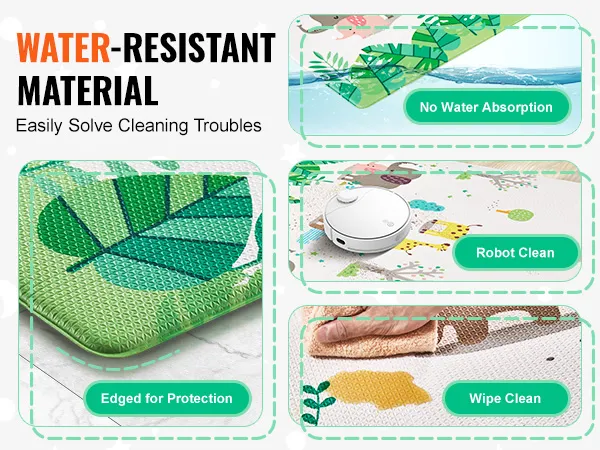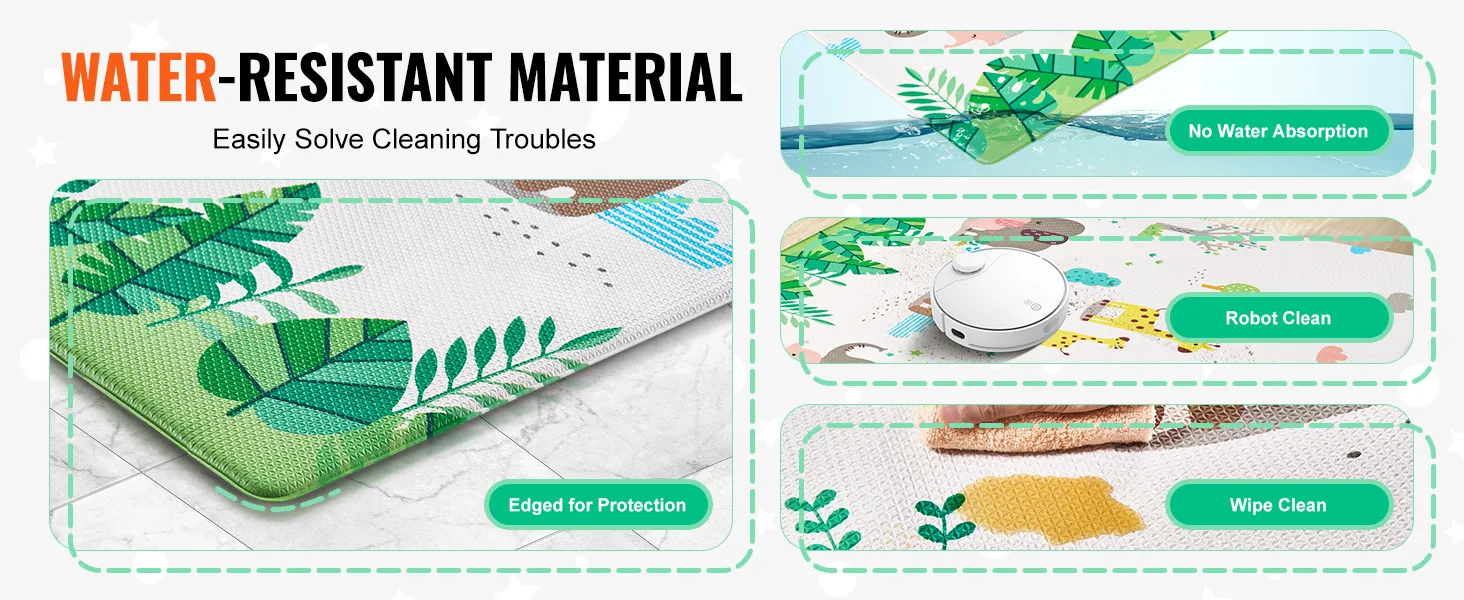 Making parents' lives easier. In addition to wiping clean, the entire anti-slip crawling mat activity playmats can be washed directly with water or cleaned using a robot vacuum.