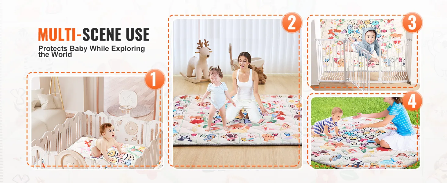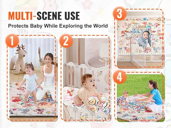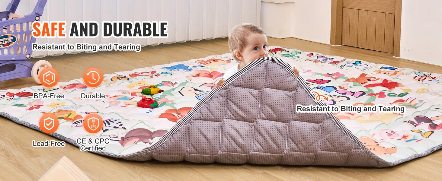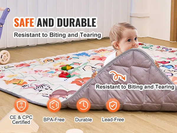 Durable & Long Lasting: The floor mat mat uses safe materials both inside and out. It meets CPC and CE certifications and passes ASTM and EN71-1/2/3 tests, ensuring it is safe even if your baby chews on it. The material is also wear-resistant and durable, not easily scratched or damaged by your baby.